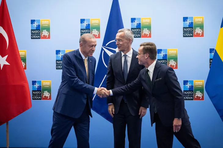 NATO Secretary Jens Stoltenberg with President of Turkey Recep Tayyip Erdogan and Prime Minister of Sweden Ulf Kristersson at the NATO summit in Vilnius, Lithuania, July 10, 2023, CREDIT: NATO photo