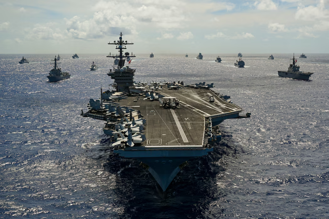 Featured Image Caption: The Nimitz-class aircraft carrier USS Carl Vinson (CVN 70) leads a group sail…