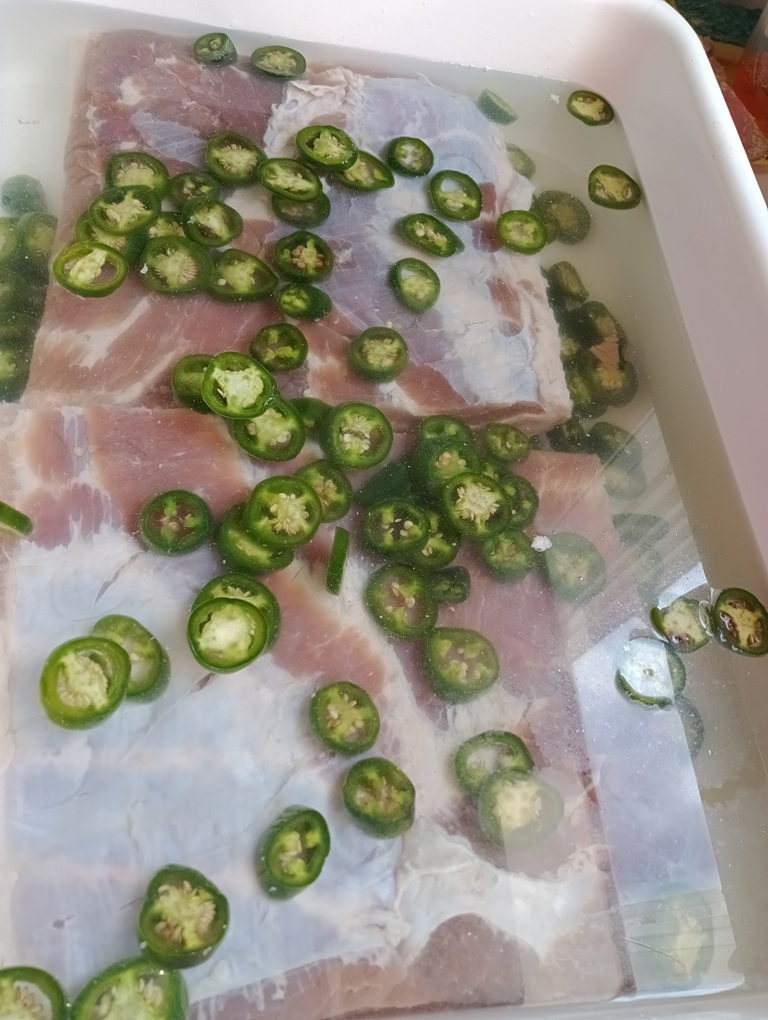 As you know, this is Christian land, round here we eat Bacon, showing you this for a reason, so stick with me here. Flavor no heat, a bath to remove all salt, no one likes salty bacon.