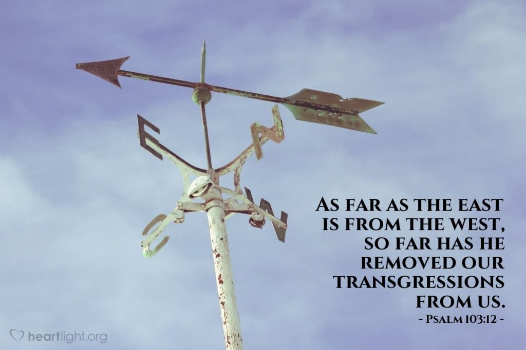 In love and mercy, the Lord has removed His people’s sins from them. He doesn’t simply move our sins onto our doorstep or a mile away; God moves them as far from us as the east is from the west.