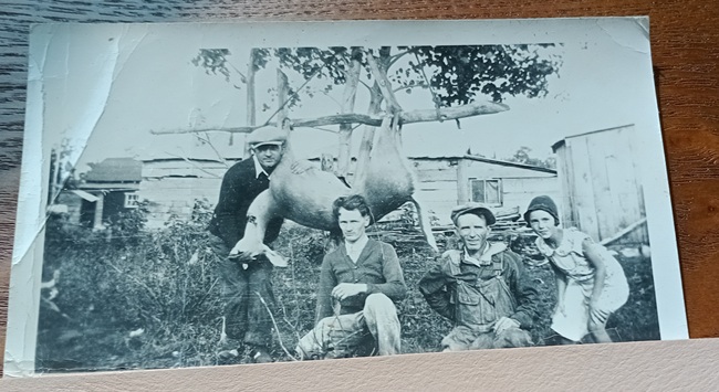She had nothin to do with taking that deer, just wanted to get her face in the picture, Grampa and a couple of buddies.