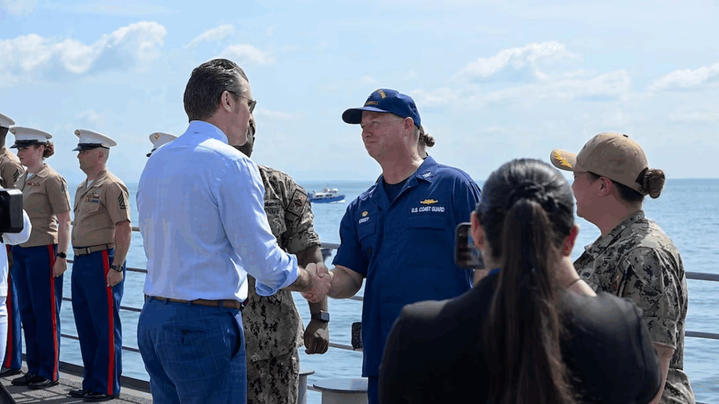 U.S. Marines with 22nd Marine Expeditionary Unit board U.S. Army Vessel Major General Charles P. Gross (LSV-5) while conducting Visit, Board, Search, and Seizure (VBSS) training, on the James River near Fort Eustis, Virginia, April 24, 2025. Led by II Marine Expeditionary Force Expeditionary Operations Training Group, the VBSS training sharpened the 22nd MEU’s edge in vessel boarding and maritime interdiction, enhancing their readiness and lethality in preparation for future operational requirements. (U.S. Marine Corps photo by Sgt. Tanner Bernat)
