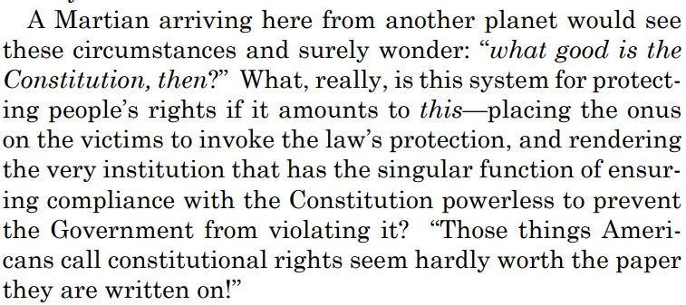 At another point in the same dissent, she uses the appeal to authority logical fallacy. But not just any appeal, but an appeal to an imaginary martian.