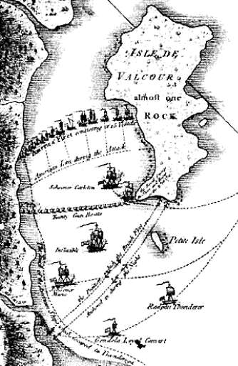 Lake Champlain was the site of a naval battle on October 11, 1776 aptly named “The Battle of Valcour Island”. General Benedict Arnold built a series of small vessels and arranged them between the Island of Valcour and mainland New York. Although a British victory, the battle forestalled a move by General Guy Carleton to advance into the Hudson River. By the time the battle was over, the season had advanced to the point that there could be no advance due to the approaching winter.