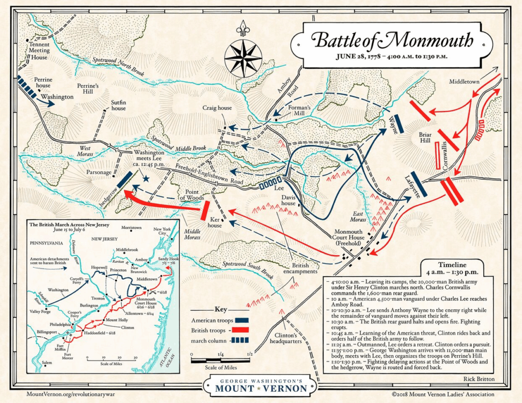 Washington decided to shadow the British as they withdrew across New Jersey. On June 28, 1778, Washington dispatched Major General Charles Lee to harass the British but as the British attacked Lee’s troops, he began a retreat.