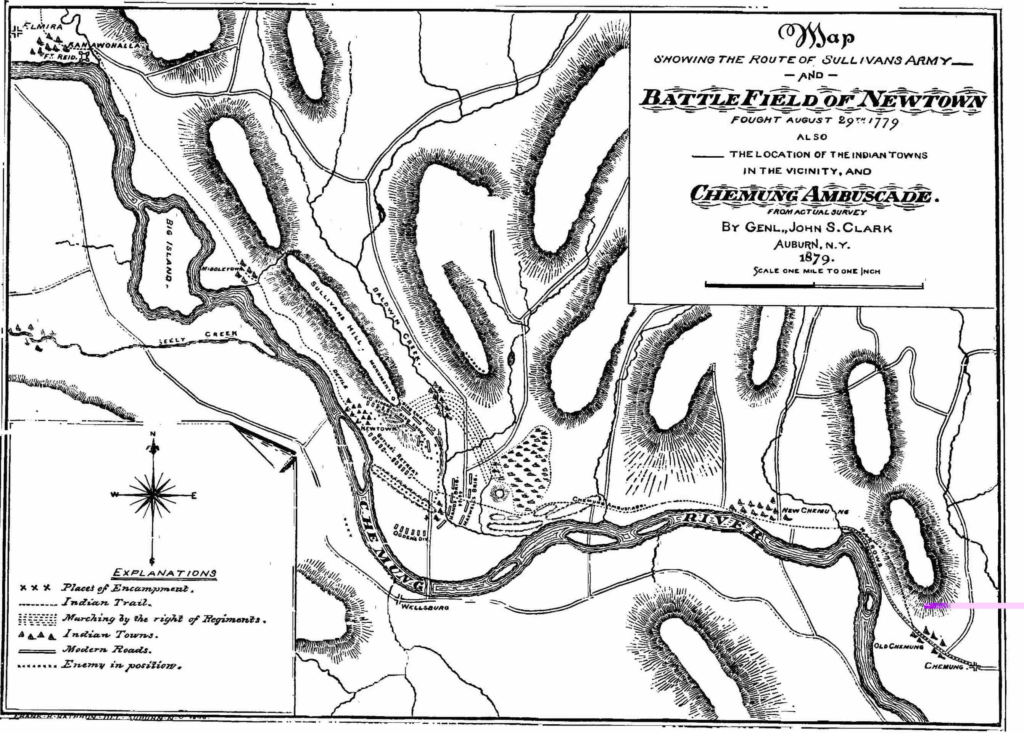 In what turned out to be a botched plan, hastily improvised revisions forced Butler’s Loyalists and their Indian allies to retreat. Butler and some of his followers escaped what turned out to be a defeat of the British and their Indian allies. General Sullivan’s Army in a three week campaign destroyed over 40 Indian villages, burning crops and widely scattering a large number of the Indian fighters before returning to Fort Sullivan.