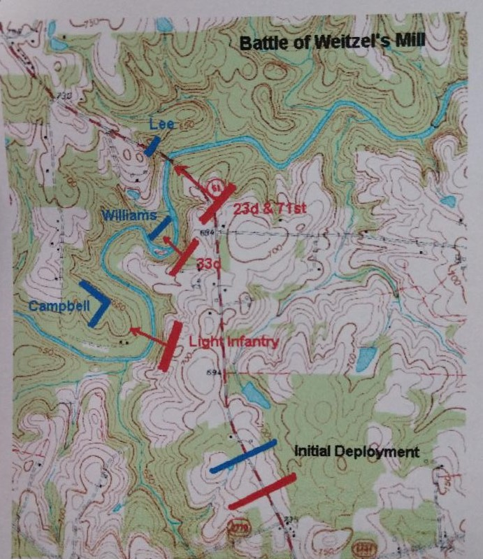 *Editors note: The spelling of the location here is somewhat flexible. It is written as Wetzell, Weitzel, Whitsell, Whitesell or Whitsall depending on the source. The consternation this caused was considerable, this editor strives to provide the most accurate images for this series. Rest assured, they are all the same place and describe the same battle. Consistent spelling as we know it today wasn’t really a thing prior to the mid-to-late 19th century.