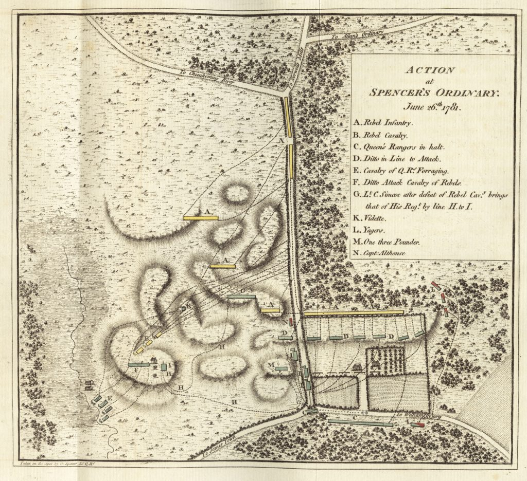 John Graves Simcoe’s map of the action at Spencer’s Ordinary. (Norman B. Leventhal Map & Education Center, Boston Public Library)