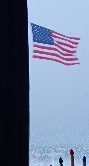 Sipping my g’damn coffee here. For landlubbers, 60 knot winds off the lake is equal to 69 mph with some change. Good thing I got new flag in early October.