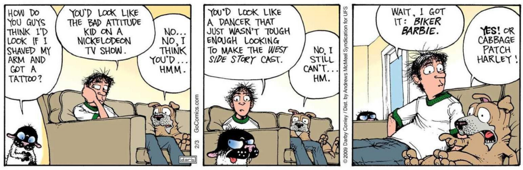 I think I may have featured this strip before. Get Fuzzy is penned by Darbey Conley and features Rob, the human, Satchel the slightly retarted dog and the vicious, sarcastic and not-quite-as-smart-as-he-thinks cat Bucky.