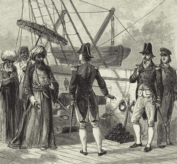 (1) The Prohibitory Act of 1775 was enacted and ratified on December 22, 1775. With its enactment, Britain placed broad restrictions on trade with the colonies and no longer protected American shipping against the lawless seizure of American vessels by the Barbary Pirates along the west coast of Africa and the Mediterranean Sea.