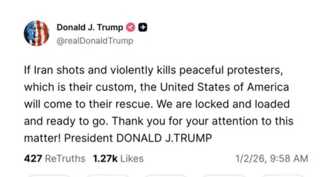 Now, don’t get me wrong, I think this strike has to happen from a moral perspective. And it is Trump’s doing that it is so. If he had not encouraged the protesters in such a visible way, we wouldn’t be on the verge of dropping tons of ordnance on Iran, killing thousands potentially.