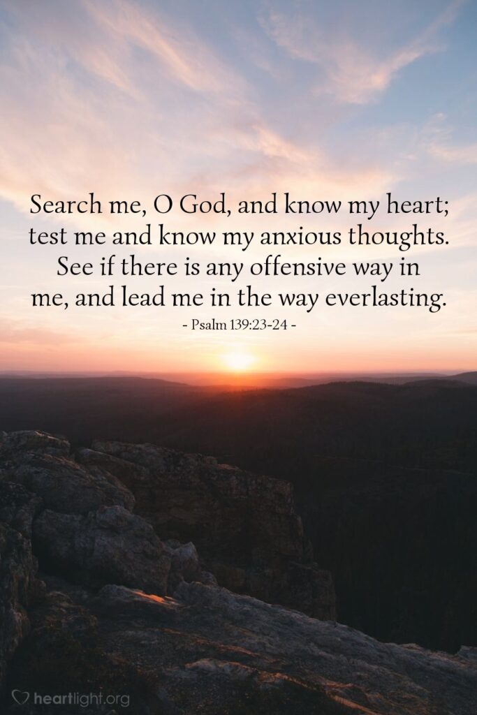 God does know us. We cannot pretend we are something we are not with him. He knows us — inside and out, through and through, from beginning to end. Knowing this should liberate us to share a remarkable degree of intimacy and honesty with him. Unfortunately, many of us run from such a close relationship with our Father. If our desire, however, is to become more like him, the only way to be transformed is by inviting him in to look at our hearts, our motivations, and our desires so that our Father can lead us in his everlasting way of mercy, grace, and love, as we journey home to him. He knows us. Let’s invite him to search us and mold us as he makes us his, new, fresh, and holy every day!
