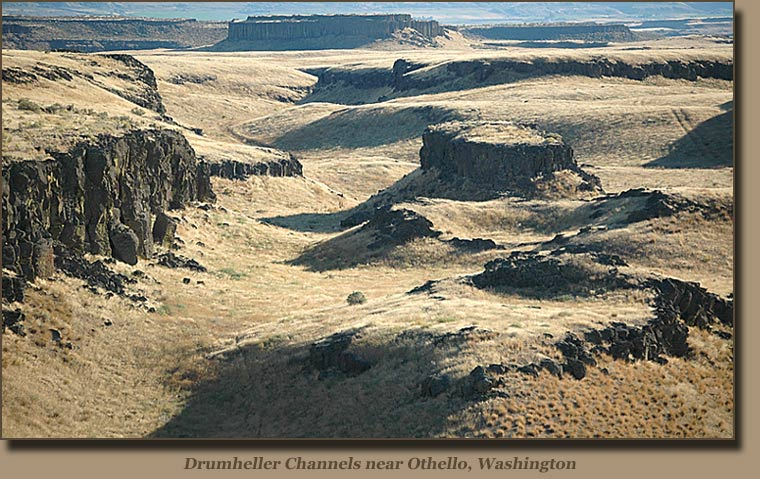 This geologic feature is a predominately barren, soil free area of coulees, dry flood channels and flat-lying lava flows that remained after numerous cataclysmic floods over the last two million years, covering an area of between 1,500 and 2,000 square miles of eastern Washington state.