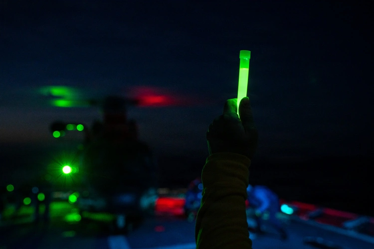 U.S. Marine Corps Staff Sgt. Jacob Myers, an airframe mechanic with Marine Medium Tiltrotor Squadron (VMM) 163 (Reinforced), 11th Marine Expeditionary Unit, conducts maintenance on the tail rotor of a CH-53E Super Stallion on the flight deck of San Antonio-class amphibious transport dock ship USS Portland (LPD 27), April 12, 2026. Portland, part of the Boxer Amphibious Ready Group, is underway with the 11th MEU in the U.S. 7th Fleet area of operations. U.S. 7th Fleet, the U.S. Navy’s largest forward-deployed numbered fleet, routinely interacts and operates with allies and partners to preserve a free and open Indo-Pacific. (U.S. Navy photo by Mass Communication Specialist Seaman Adam Bishop)