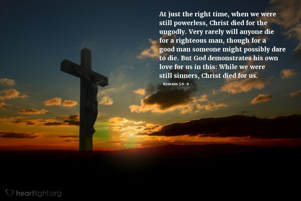 Jesus did not die for us because he had some high hopes for who we are. He certainly didn’t die for us because of what we had done in the past that merited his sacrifice. No, he died for us because he knew exactly who we are and where we would be without him. Praise be to God; we are now God’s righteousness because Jesus took our sin upon himself and gave us God’s grace and righteousness in place of our sin (2 Corinthians 5:17-21).