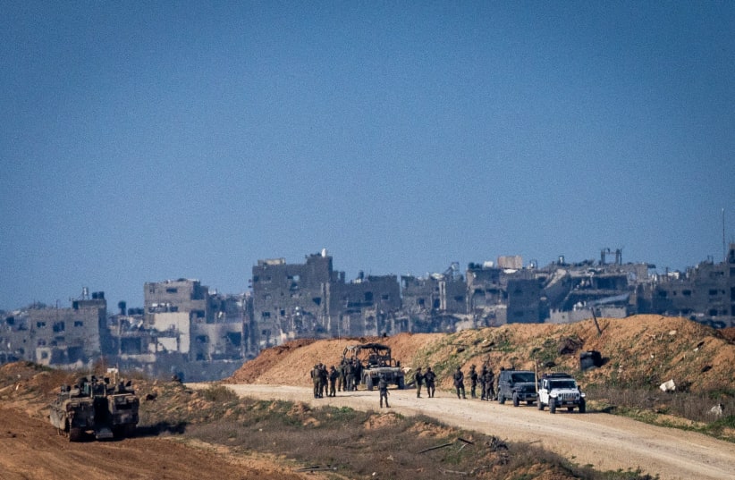 Israeli soldiers seen inside the northern Gaza Strip, as seen from the Israeli side of…